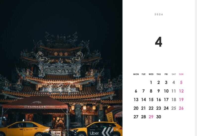 【卓上】2026年フォトカレンダー|台湾写真シリーズ|B6リング式